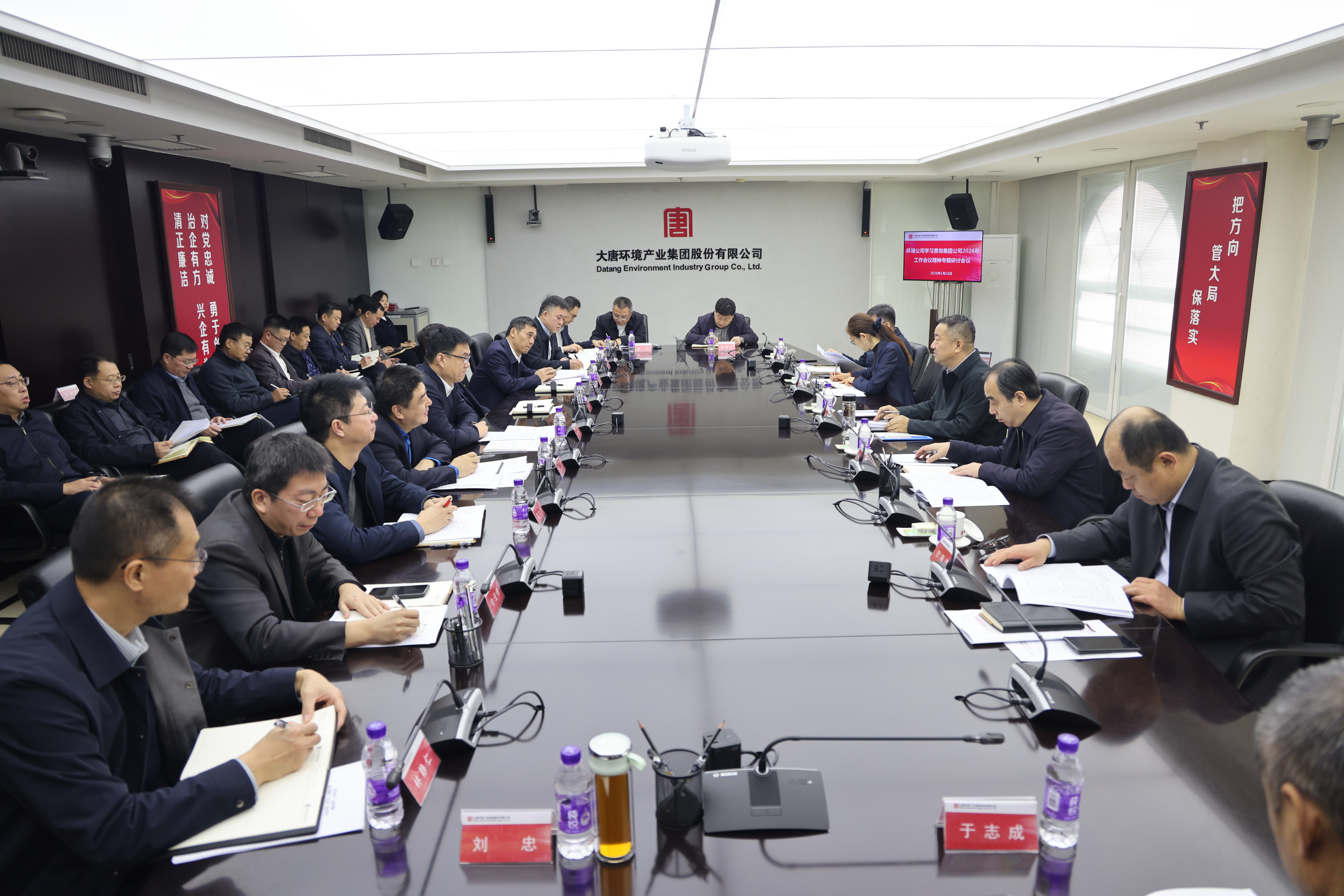 本网讯 1月16日,大唐环境召开学习贯彻集团公司2026年工作会议精神专题研讨会议,传达集团公司工作会议精神,研讨贯彻落实举措。公司党委书记、董事长朱利明主持会议,公司领导陈崧、王杰、任海涛、李立坚参加会议。