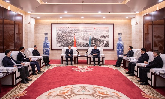 集团公司党组成员、副总经理曲波、彭勇,国家电网党组成员、副总经理庞骁刚参加会见。