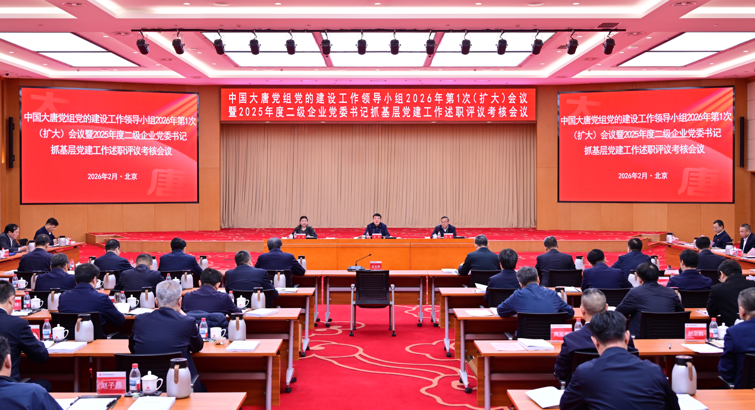2月27日,中国大唐集团有限公司召开党组党的建设工作领导小组2026年第1次(扩大)会议,深入贯彻落实习近平总书记关于树立和践行正确政绩观的重要论述,传达学习中央党的建设工作领导小组会议精神及国务院国资委党委部署要求,部署开展树立和践行正确政绩观学习教育工作。集团公司党组书记、董事长吕军出席会议并讲话,党组副书记、董事余波主持会议,驻中国大唐纪检监察组组长、集团公司党组成员王瑛出席会议。