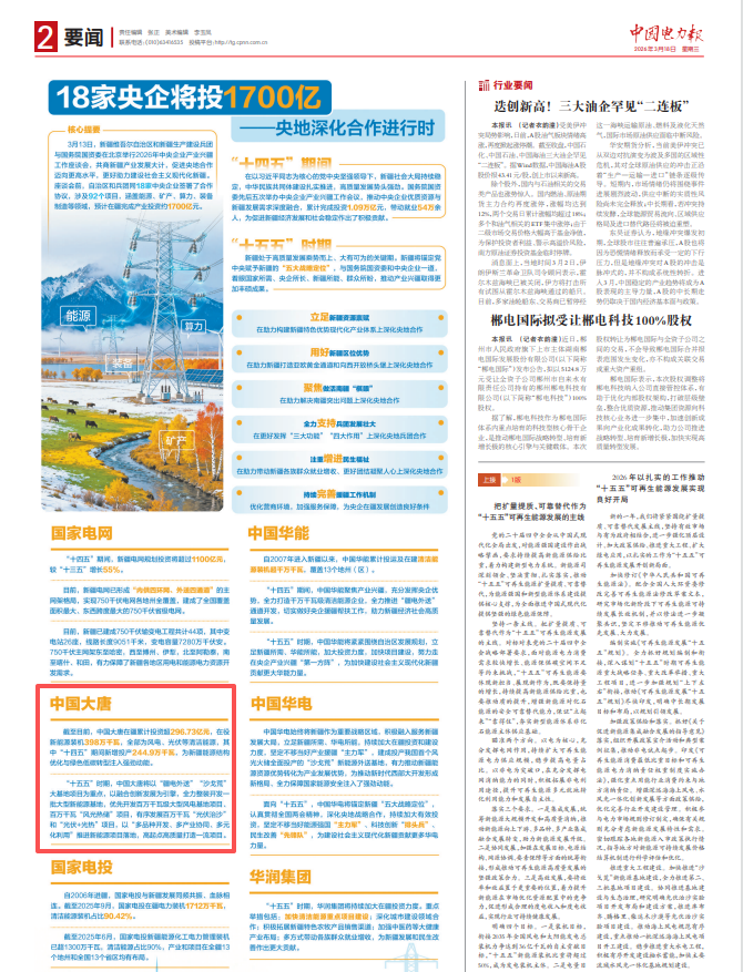 [中国电力报]2026-3-18-2-18家央企将投1700亿央地深化合作进行时